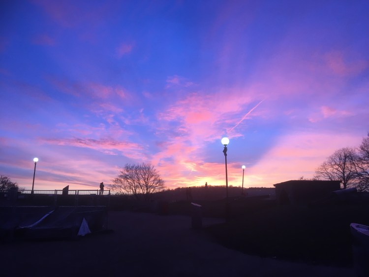 Efter jobbet klättrade jag upp till Skansen Kronan. Det var många, många trappsteg, men så värt det! Jag fick njuta av magiska färger när solen sakta sänkte sig över Göteborg. Wow!