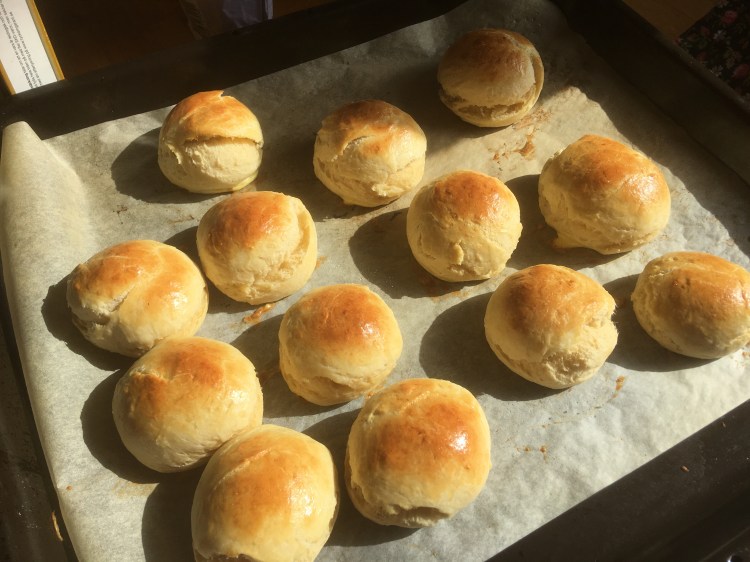 - Briocher. På lördagsmorgnar försöker jag ofta äta en lite lyxigare frukost och njuta av något nybakat. En lördag blev det briocher. Dessvärre hade jag läst lite fel i receptet och trodde att degen endast skulle jäsa en gång, i 30 minuter. Det visade sig att den skulle jäsa 2×30 minuter, så min frukost blev något försenad. Men briocherna var ruskigt goda!