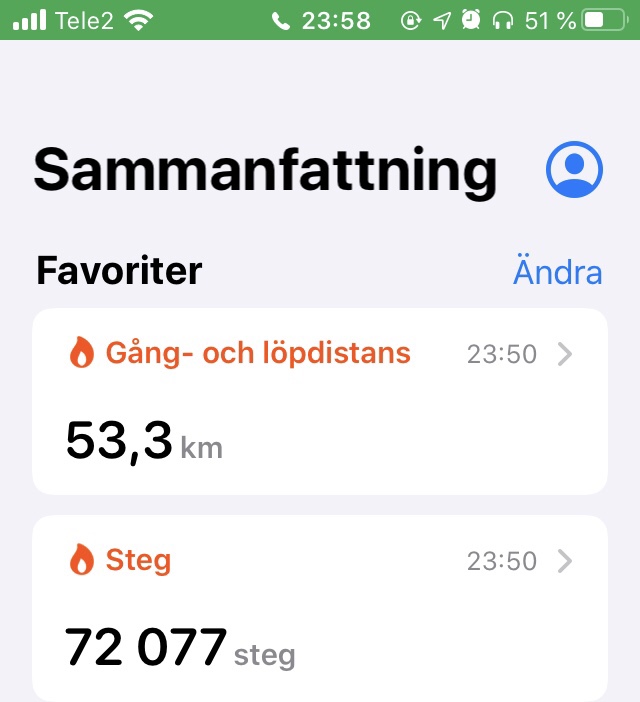 Rekord är till för att slås, menar jag, så jag kom på att jag ville slå mitt förra stegrekord på 55.000 steg på ett dygn. Målet var att komma över 60.000 och eftersom jag gick på rätt bra blev det tillslut 72.081 steg. Jag gick under 19 av dygnets 24 timmar, sov fem timmar och var rejält trött vid 22-tiden. Men detta rekordet lär nog stå sig ett tag. Vid 23 var jag helt slut och ville helst inte ta ett endaste steg till. Men kul var det!