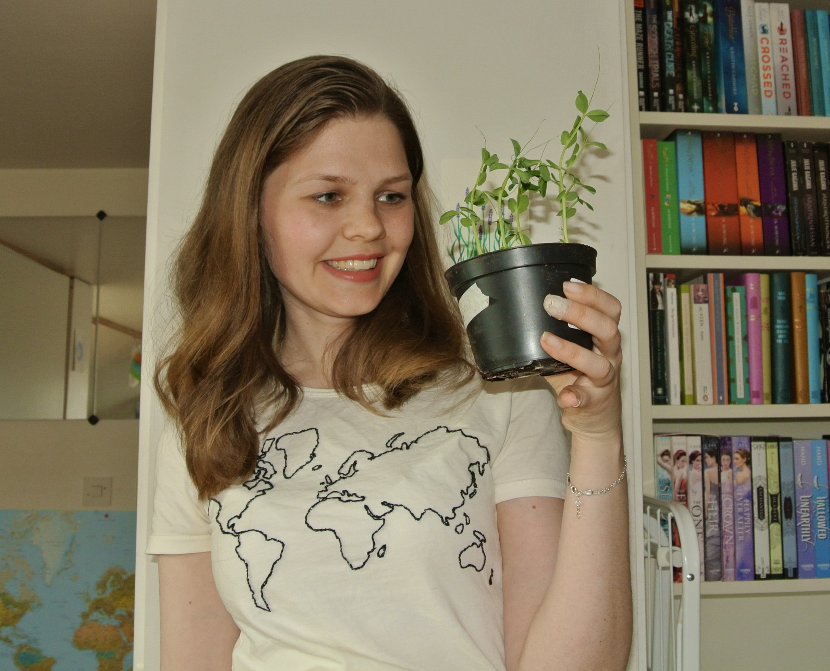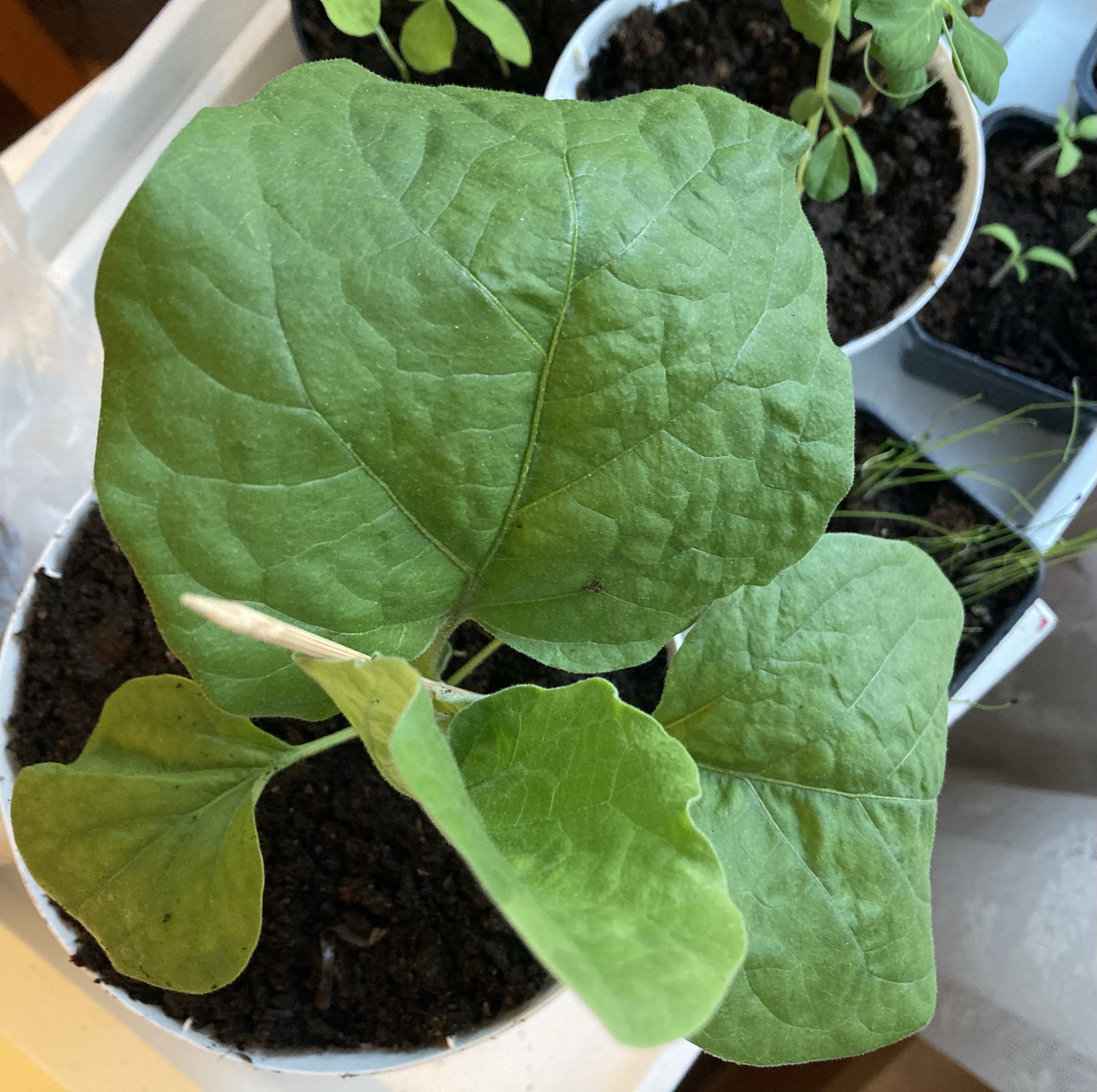 - Jag odlar litegrann! På bilderna syns min aubergine (som jag kallar Hjördis) och mina sockerärtor, Dorisarna. Utöver det odlar jag tomater, sallat, gräslök och luktärter. Vi får se hur det går!