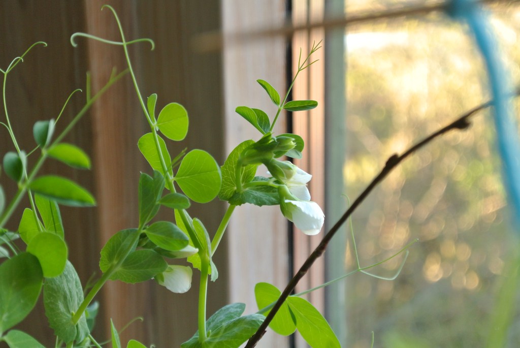 Jag har cirka 23 luktärtor som jag kallar Lucie. De är kanske lite väl smala och klättrar överallt men jag är väldigt förtjust i dem. Förhoppningsvis kommer de blomma snart.
