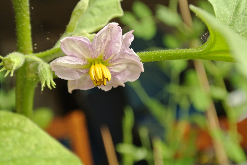 2 thoughts on “Auberginen blommar och sockerärtorna kan skördas