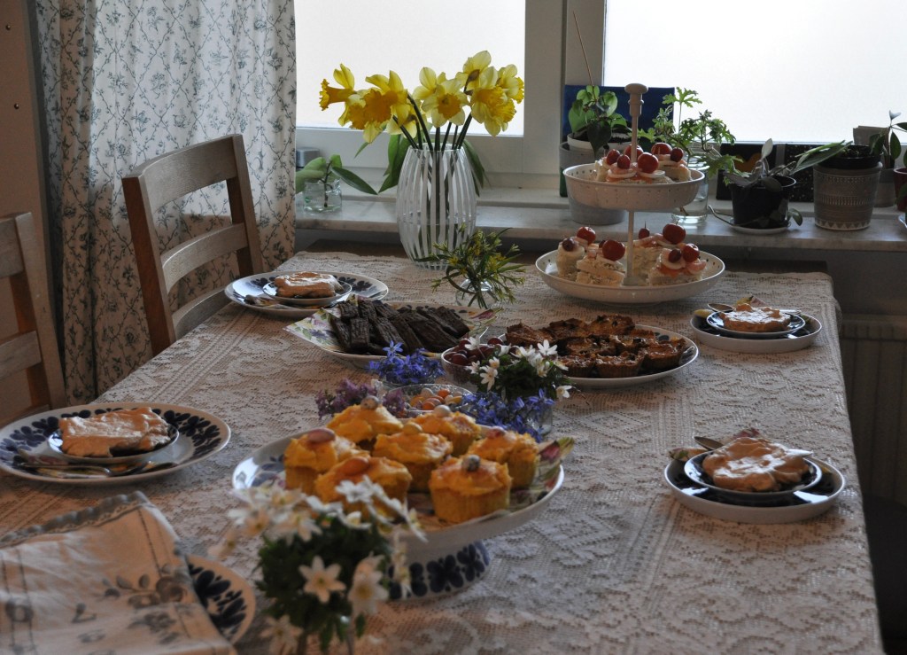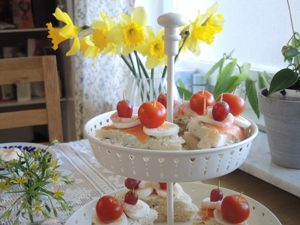 Det börjar bli allt vanligare att jag bjuder på afternoon tea och underbart är väl det! Denna gång var det påsktema som stod på agendan. Gula cupcakes, smörgåstårtesnittar, minipavlova som ser ut som ett stekt ägg och massa annat gott bjöds det på. Här kommer fem bilder på kalaset!
