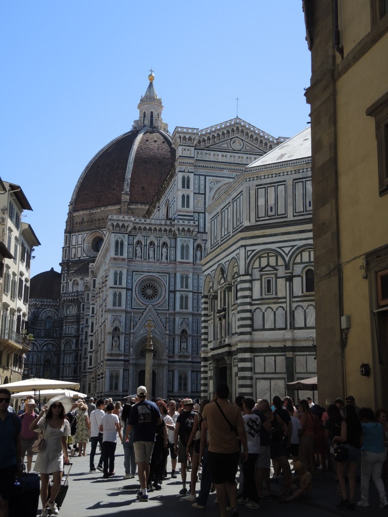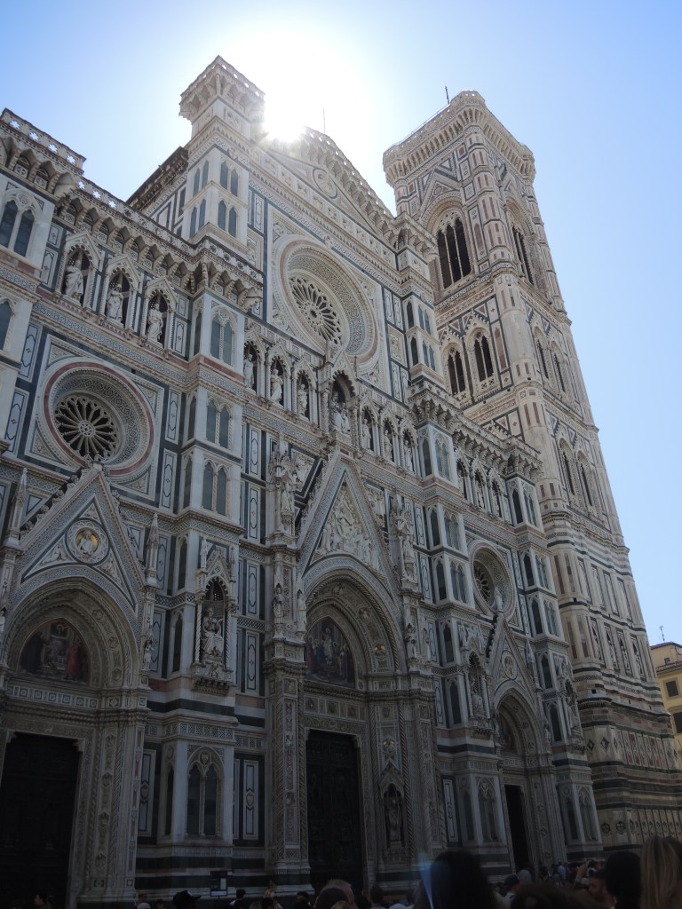 Och så övergår dagen till natt även här i Italien. Idag har vi tagit bussen in till Pisa för att sedan ta tåget till vackra, vackra Florens. Florens med sina 33 heta grader, storslagna katedraler, sin slingrande flod och den magiska affären med masker. Jag är otroligt glad att vi tog oss tiden att åka till Florens, och idag hade vi inga problem att komma med rätt buss och tåg. Mycket information finns såklart på engelska, men italienarna gillar sin italienska, det är ett som är säkert. Så ibland får man gissa.
