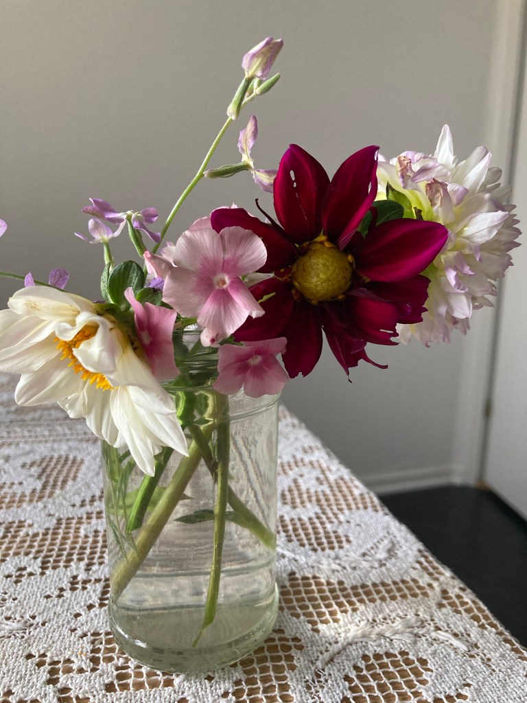 Jag älskar blommor. I år har jag utökat mina odlingar på min uteplats och provat på allt möjligt. Bland annat har jag frösått ett gäng dahlior utöver de jag köpt som knölar. Och nu har de första frösådda dahliorna börjat blomma. Det är en exalterande spänning att få se vad det är för blomma, för färger som tittar fram, för jag har ingen aning. Än så länge är det en som drar åt det vita hållet och en som är mer lila. Sen blommar även den enda sommarfloxen som överlevde så det är ju trevligt. En vacker liten varelse.