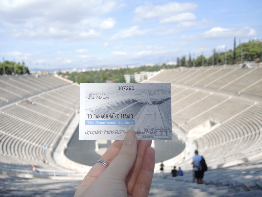 En väldigt maffig stadion som vi gick runt, klättrade på läktarna och tog bilder, samtidigt som några barn hade idrottslektion nere på banorna.