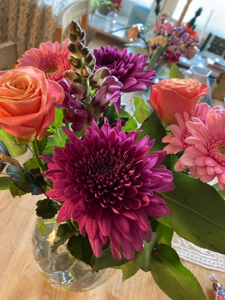 Bordets center piece- en maffig bukett i härliga färger!