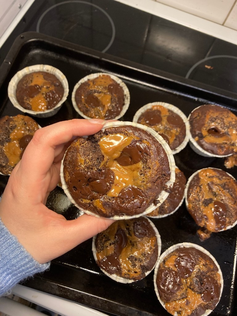 Då var denna veckas bakning roligare. Chokladmuffins med kolasås och chokladbitar. Mums!
