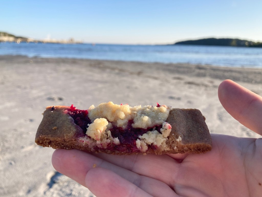 I måndags åkte vi ner till havet efter jobbet. Erik hade bakat scones och jag hade bakat kolasnittar med hallonfyllning och smulpajstopping vilket var denna veckas bakning. Mums!