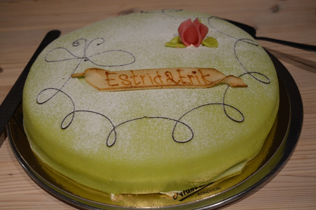 Och tårtorna var prinsesstårtor! Vi hade köpt två 20-bitarstårtor, en 18-bitarstårta och en specialkosttårta på åtta bitar. Det blev lite över på specialkosttårtan så den har vi ätit på här hemma (och den var mycket god med tanke på att den var glutenfri). Vi var supernöjda med tårtorna och gästerna verkar också ha uppskattat dem. Win-win!