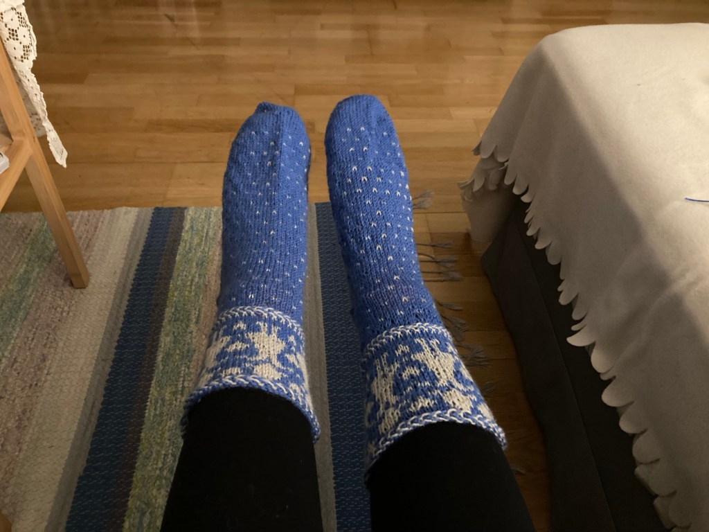 Så trevligt att hitta på nya traditioner och få samlas och mysa, äta gott och ha roligt också….och strumporna 😍 så bedårande fint mönster…det var ju litet lessamt att det blev till extra arbete för din del. Men gör man inga misstag så lär man sej inte….önskar Dej all lycka till med nya paret.