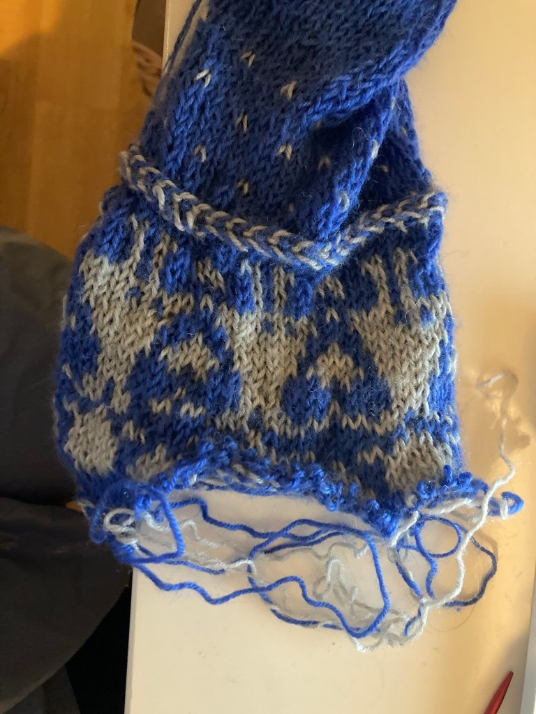 Det tog nästan en hel dag och då fick jag hjälp av min syster med ena strumpan. Nu är jag tillbaka på ruta ett! Dock har jag lärt mig hur man ska hålla garnen vid flerfärgsstickning och även insett att jag stickat med för stora stickor. Inte konstigt att det inte blev bra! Nu har jag vunnit nya kunskaper och lånat ett par tunnare stickor. Kanske tar det inte tre år att få klart Systersockarna 2.0?