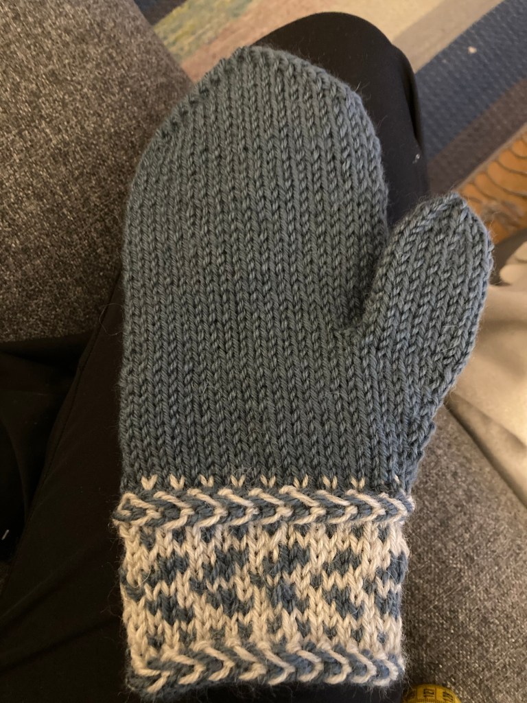 Utöver det har jag stickat ett par vantar till mig själv i restgarn från två tröjor jag har stickat till Erik. Jag är inte så vass på flerfärgsstickning men det gick ändå bra tillslut. Skönt också med varma vantar när vintern knackar på dörren.