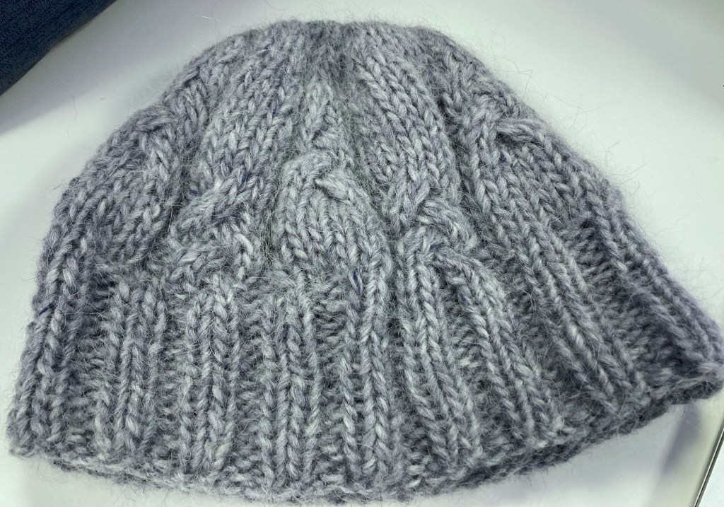 Det är första gången jag provar på flätstickning och jag tycker det är kul! Det kommer produceras ytterligare några mössor innan restgarnet tar slut. Planen är att mina svärföräldrar ska få i julklapp, och även Eriks syster.