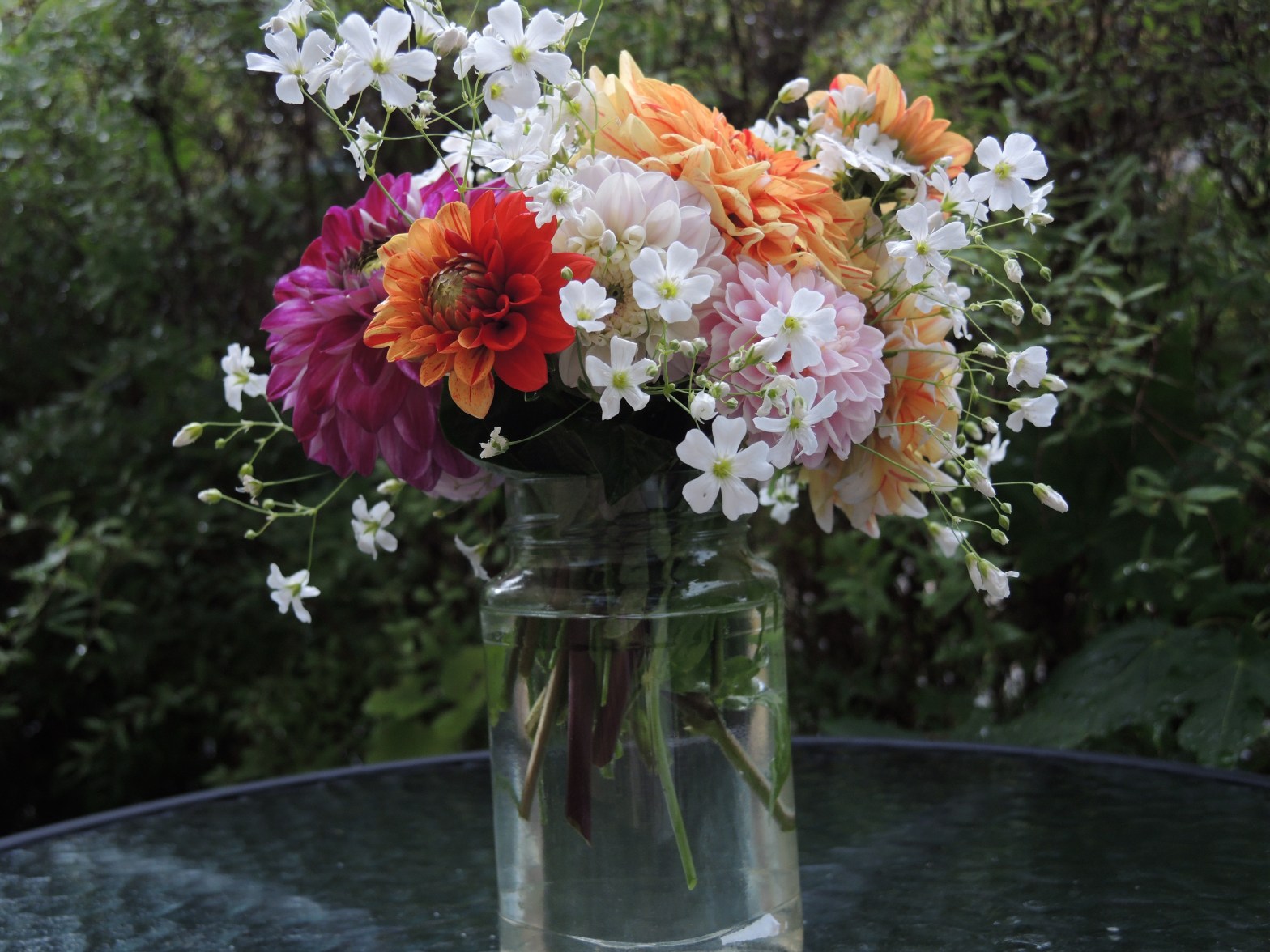 Nu blommar det lite nya sorter på uteplatsen, även om det på inget sätt blommar i överflöd. Visst, mina tagetes är väldigt fina, och ändrar dessutom färg på ett roligt sätt, men stjälkarna är korta och blommorna kan inte användas i buketter. Men nu har två nya sorters dahlior börjat blomma och sommarslöjan har slagitContinue reading “En liten bukett”