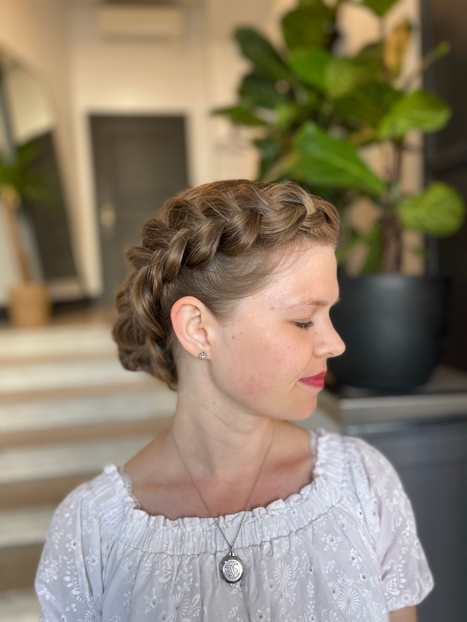 Min frisör ska göra sitt gesällprov på söndag och jag har fått äran att vara hennes modell vad gäller håruppsättning. Idag var det dags för övning och wow! Jag har aldrig haft håret uppsatt professionellt innan så det var en spännande upplevelse. Och visst blev det fint!